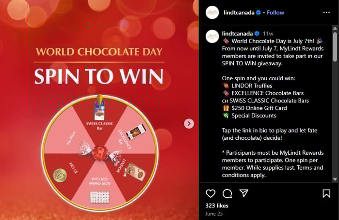 Special days are unique in their own ways, but why not make that day special to your brand? Lindt ran a spin-to-win campaign for World Chocolate Day where loyalty members had a chance to win some delicious treats.